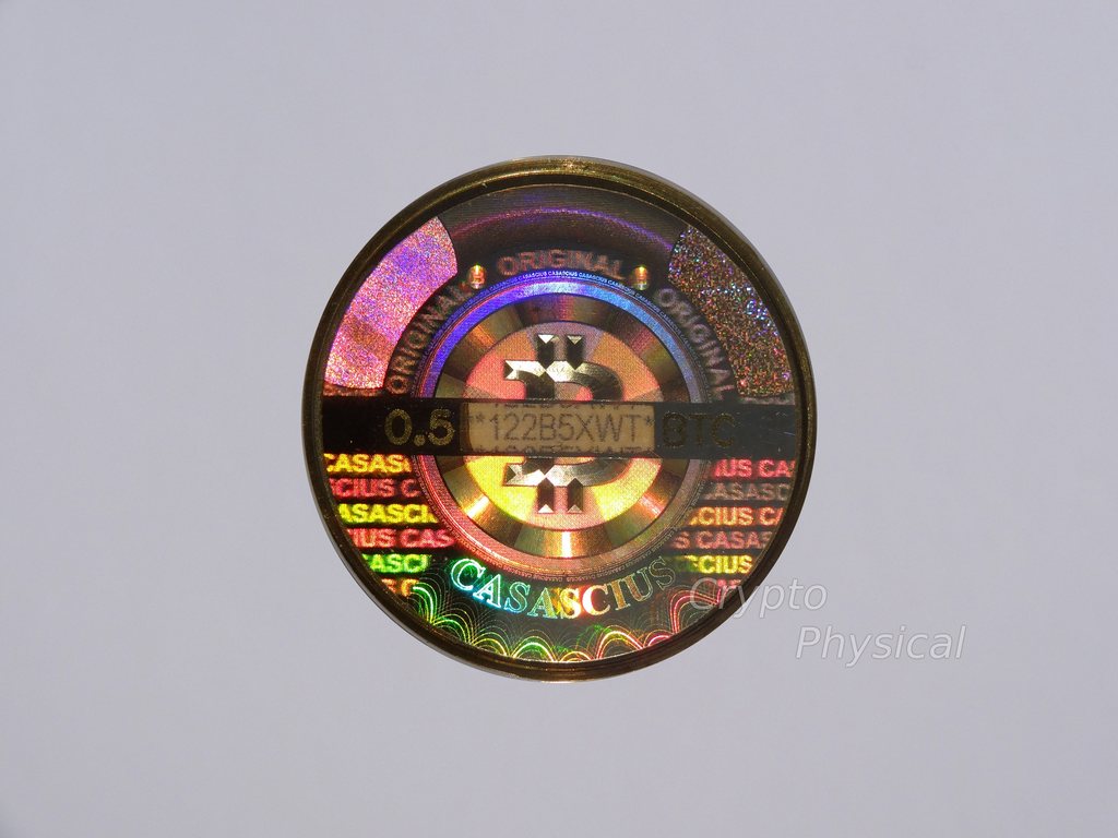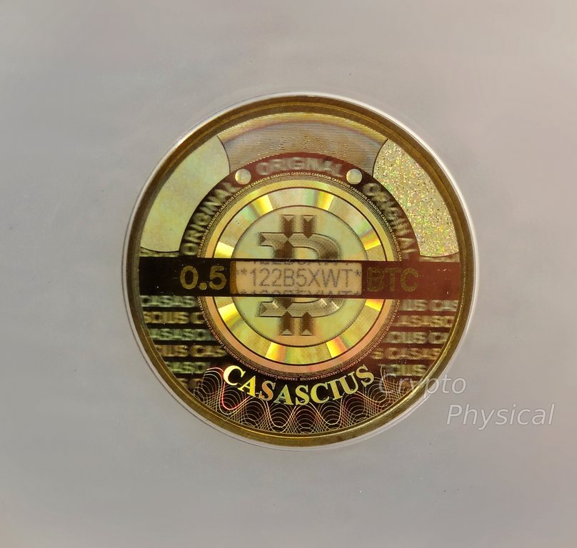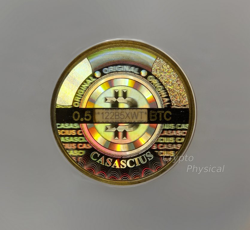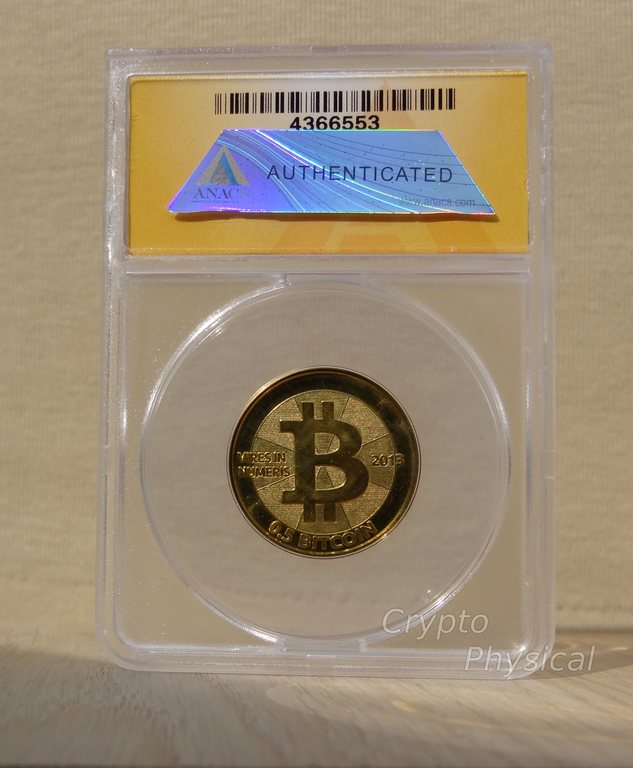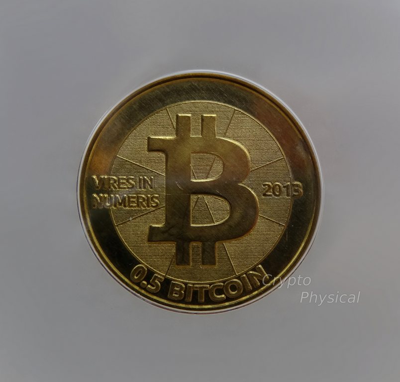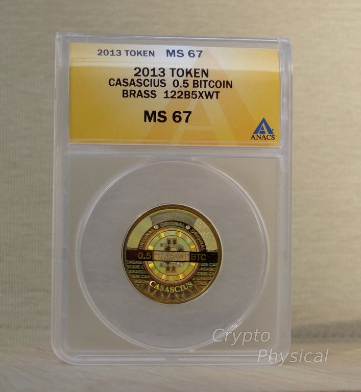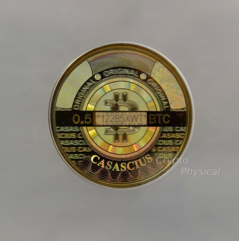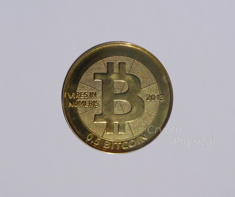 0.5BTC brass SpecificationYear: 2013 Denomination (BTC): 0.5 Metal: brass Mintage: N/A Weight (g): 5.5 Thickness (mm): 1.5 Diameter (mm): 25.4Design, Manufacturer: USA.UT. Photo Video Prev Next